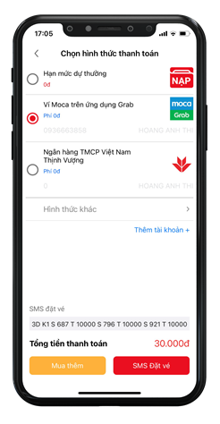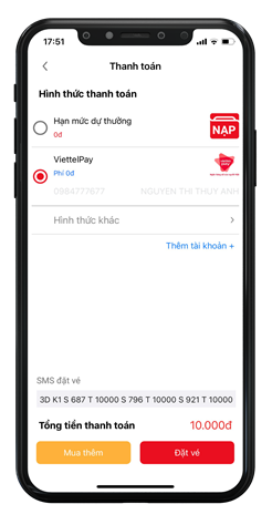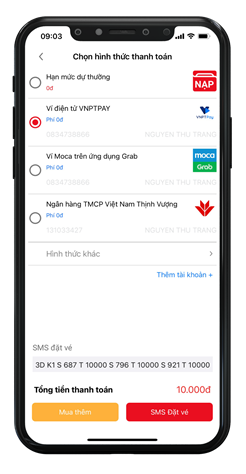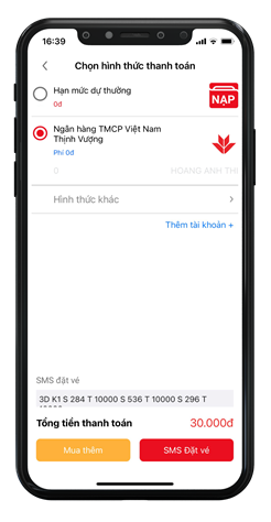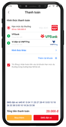 Chọn số, Thanh toán, Đặt vé
