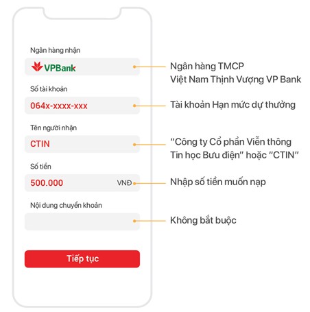 Khách hàng nạp tiền bằng cách chuyển khoản ngân hàng:
