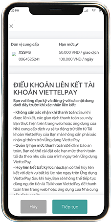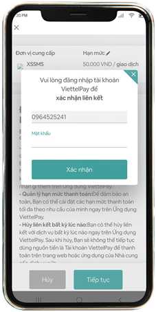 Do đó, nếu bạn lựa chọn hình thức thanh toán mặc định là tài khoản ViettelPay, bạn cần thực hiện ủy quyền thanh toán lại như sau: