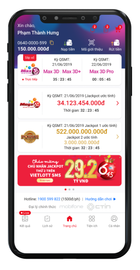 Trả thưởng trực tiếp vào tài khoản ngân hàng/ví điện tử của người chơi ngay sau khi trúng thưởng..